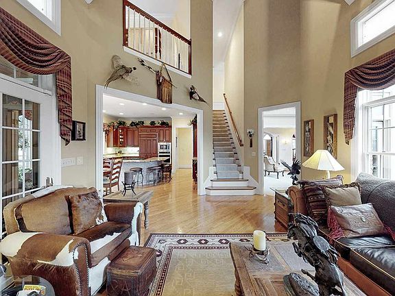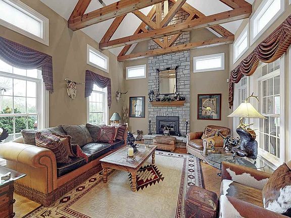Absolutely stunning! Gentlemans Farm.Gated, 9 + meticulous acres. 1st floor master bedroom. 3 car garage attached and an added 2 car garage (2012) that is extra deep and high for RV, boats and toys! Home features 5 bedrooms, 6 fireplaces, beam ceiling, Fully equipped gourmet kitchen with granite. Enclosed season room. Finished Lower level with bar and multiple seating areas for entertaining. Bonus room. Inground pool with stone waterfall. Barn, shed and pond. 25 minutes from downtown. Livestock welcome.