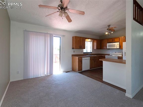 Great Opportunity on this 1,320 Sq. Ft., 3 Bedroom, 2 Bath, 2 Car Bi-Level Home. Located in Briargate on a Cul-de-sac in a Quiet Neighborhood, This Home Shows Good Curb Appeal. The Upper Level Features a Large Living Room, Dining Room, Kitchen, Two Bedrooms and Full Bathroom. The Lower Level Includes a Cozy Family Room, the Third Bedroom and ¾ Bath. The Kitchen Includes Refrigerator, Dishwasher, Disposal and Range/Oven. The Two Upper Bedrooms Include the Master with Attached Full Bath and Walk-in Closet. The Lower Level Family Room Features a Beautiful Brick Wood Burning Fireplace The Dining Room Walks Out to a 9’ x 14’ Wood Deck Overlooking the Sizable Backyard and Offering Pikes Peak and Mountain Views. Other Interior Features Include New Carpeting and Wood Laminate Flooring, Vaulted Ceilings and Ceiling Fans. Close to Schools, Parks, Shopping, Entertainment. Come Take a Look and Fall in Love Today.