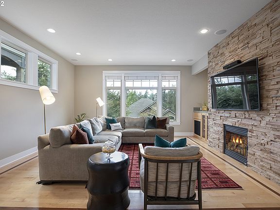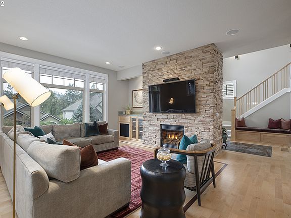 With stunning curb appeal & a desirable West Linn location, this home has it all! A beautiful stone fireplace serves as a focal point in the living room, open to the dining area & modern kitchen, featuring abundant cabinet & counter space, granite countertops, & stainless appliances. Enjoy convenient main level laundry & a separate den/office! Upstairs, the luxurious primary suite has a huge closet, jetted tub & custom tile shower. The finished basement features a 4th bedroom & full bathroom.