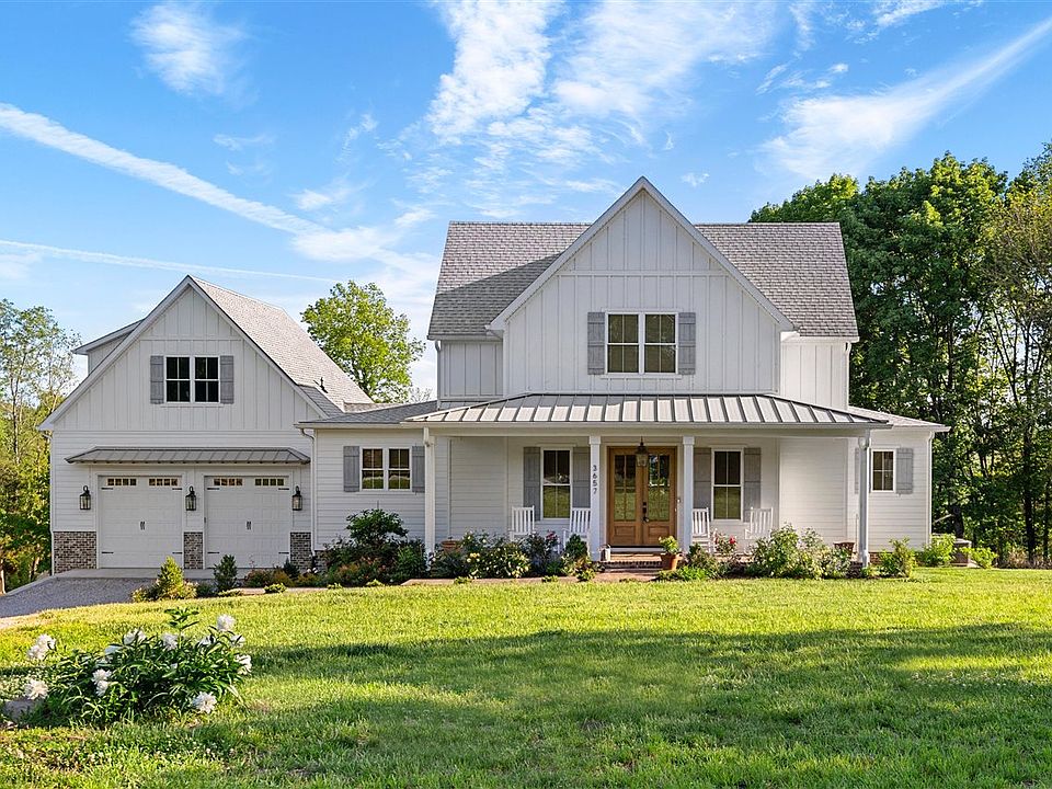 Welcome home! This 2022 Southern Living Four Gables inspired build features 4 bedrooms, and 3 and a half baths. With this dreamlike kitchen and walk-in pantry, the possibilities are endless. Nestled on 12 acres and just minutes from I65, the property features a matching two story bank barn with three 12x12 stalls. This perfect mini farm is fenced and ready for your animals. Sit on the large back covered deck, screened in porch, or patio and enjoy the sunset and tranquility of a quiet evening. Being just minutes from beautiful Barren River Lake, the attached two car garage offers oversized doors to fit your boat! The perfect mancave or luxury office is located above the garage and gives this bonus room area ample space for your imagination. This is truly a once in a lifetime property that can only be appreciated adequately in person.