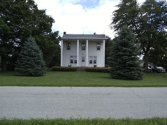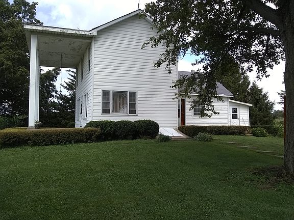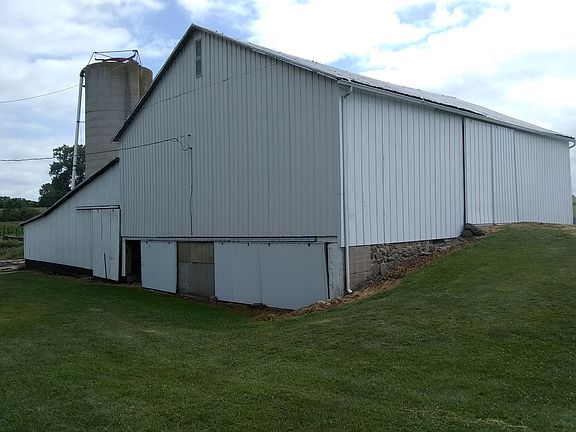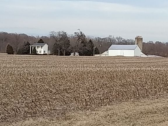 This house and set of farm buildings is being sold with approximately 4+/- acres of land and is completely surrounded by agricultural fields. Property includes colonial style, 2 story, four bdrm, 1 bath, farm house complete with all appliances (stove, refrig, washer, dryer, freezer and water softener). Forced air heat pump with propane backup, a/c, breaker panel, well and septic system . First Level: Laundry 16x11; Dining 18x 8.5; Kit 8x12; Liv 14x27 irr; Bdrm #1 12x9; Bath 6.5x6.5; covered colonial porch 27x10 Second Level: Mbdrm 14x16; Bdrm #3 10x8; Bdrm#4 10x8; Full height Attic with sloping ceiling 17x8 Property includes 2 car detached garage (20x30), corncrib/shed (35x30), grain bin (approx 2500bu), silo (16diax50), hand hewn post and beam wooden peg timber frame bank barn (55x 40) with two large attached sheds (45x55 and 45x20) Property adjoins creek on one side and includes fenced pasture lot which could be possibly divided off for additional building lot. Located on quiet country road near Kiser Lake State Park. Perfect for your country home, small hobby farm, organic farm, or midsize livestock operation. If a larger lot is desired, an additional 6 acres can be purchased for an additional $90000. Drone video can be seen at https://youtu.be/-9axzlkzcX4 For additional info call Brian at 5one3364nine103