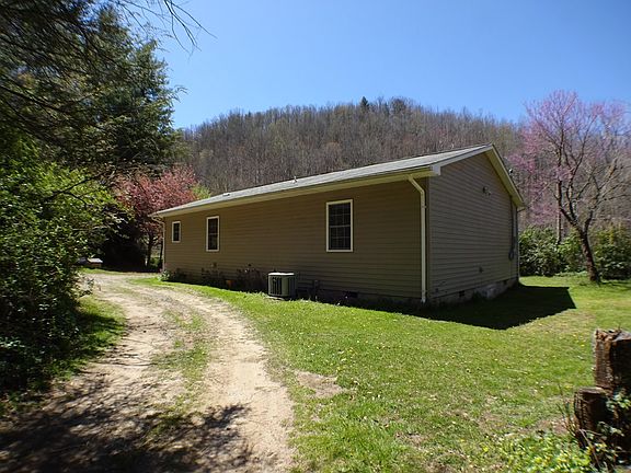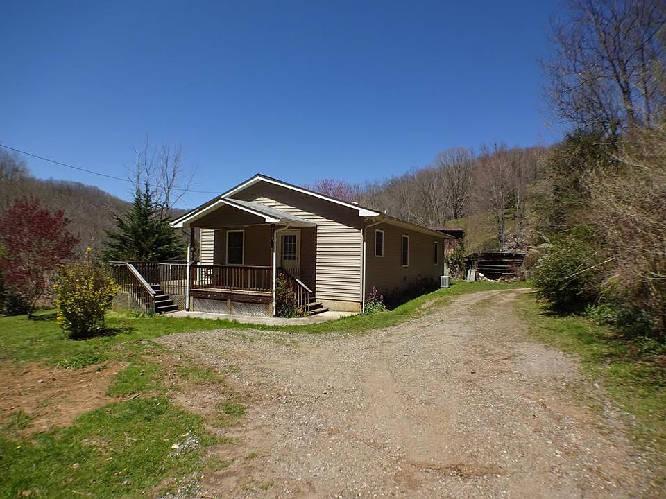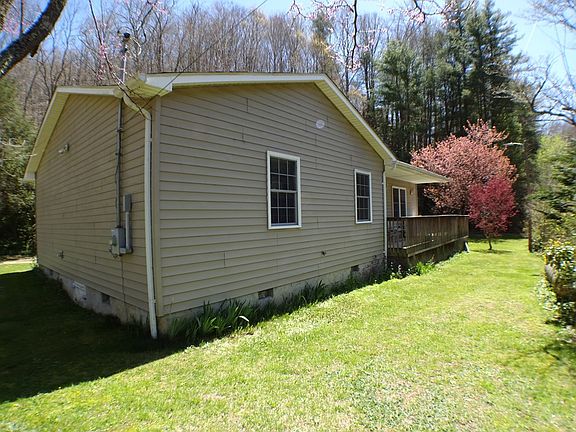 Listen to rushing Pumpkintown Creek across the road from this 3 bedroom/1 bath ranch on state maintained, paved road. Mid-way between Franklin and Sylva, your new home boasts single level living, large rooms, nice deck overlooking bold, rushing creek. Outbuildings for more storage. Portable gas log fireplace in living room conveys.