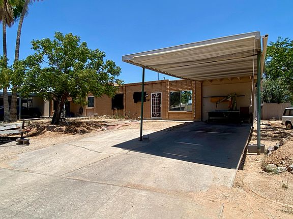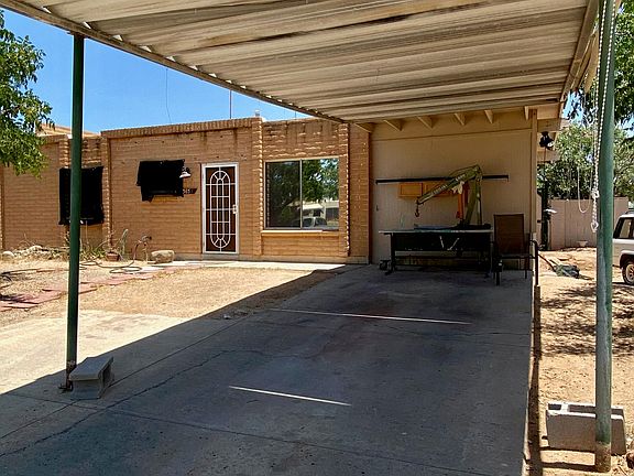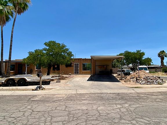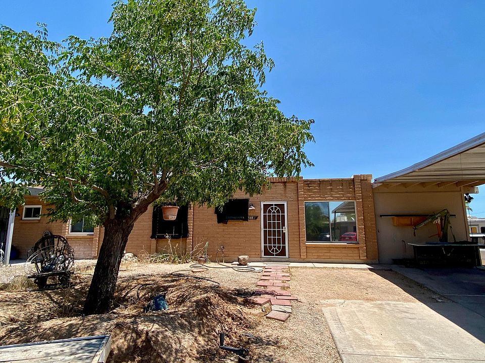 OPEN HOUSE FOR SHOWINGS THURSDAY JULY 2nd 11am- 1PM and 5pm -7pm. Cute Ranch style brick townhome on Tucson's Eastside with 2 bedrooms 1 bath and a den! No carpet, only tile and laminate wood flooring. Large laundry room. Kitchen is updated and includes black fridge, microwave, gas stove, dishwasher and high end granite-look laminate countertops and black granite sink. Large fully fenced backyard has Water Collection Tank, shade tree, mature landscaping backs up to an alley and has full length covered patio. End unit in a culdesac! Homes like this with No HOA don't come up often for prices like this. Cold AC! 1 car carport. Water heater replaced 2015. Don't delay! Tenant is on month to month lease and would like to stay and rent if possible but otherwise will move August 1st. Don't delay!
