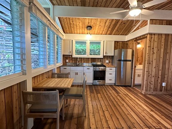 Cedar wood cabin in Tantalus! Newly remodeled and furnished studio cottage with large lanai available now. Enjoy the cool tropical mountain breezes with an indoor outdoor living space. The cabin is 400 square feet and the covered lanai is also 400+square feet. Sorry no pets. One year lease is ideal but we are willing to consider a shorter term lease. Utilities not included Utilities are bundled at $150 and include, water/sewer, electric, internet and yard services. Would prefer a one year lease. Parking included