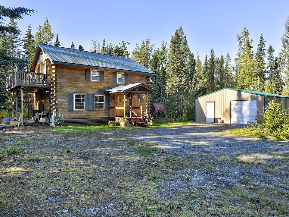 2.30 ACRES OF PRIVACY in a park-like setting. 2006 built one owner LOG HOME. 2 bedrooms, 1.75 baths with 1440 sf & an open main layout with rustic exposed beams. BONUS guest cabin/studio to finish the way you want. NEW carpet throughout home & NEW pellet stove. NEW 2 car 576 sf SHOP, lots of parking, bonus shed & a winding driveway to your new home nestled in the woods. Charming & clean for you.