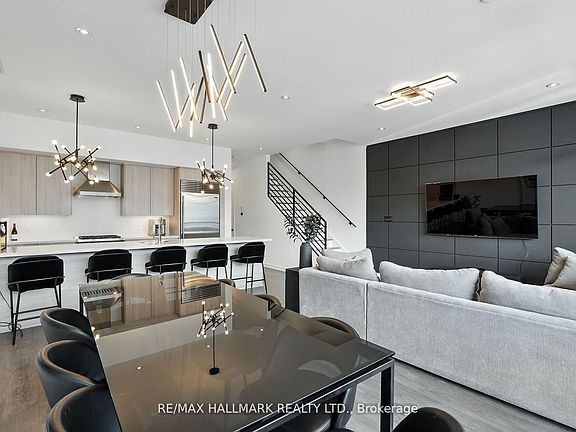 Step into luxury living with this stunning three story, 2,540 sqft LakeHome, exquisitely upgraded on every floor to offer unparalleled style and comfort. The first, second, and third levels have been meticulously enhanced, featuring elegant wrought iron railings and modern pot lights that brighten every corner. The spacious third floor boasts a large entertainment area and an expansive deck perfect for hosting gatherings or unwinding in peace. The garage floors have been upgraded with durable and stylish epoxy coating, combining functionality with aesthetic appeal. This exceptional home offers a well designed layout with four bedrooms and five bathrooms, all just steps from the picturesque shores of Lake Simcoe. At the heart of the home is a gourmet kitchen with an oversized island, top tier Sub Zero and Wolf appliances, built in conveniences, and sleek quartz countertops. Enjoy impressive water views and easy access to a spacious deck with glass railings and a BBQ gas hook up, ideal for seamless indoor outdoor entertaining. High end upgrades chosen on all three floors, including custom paneling, electric blinds with blackout features in bedrooms, and a built in bar on the third floor reflecting a significant investment in quality and style. Located within the prestigious Friday Harbour community, residents benefit from exclusive access to the Beach Club, The Nest Golf Course with prefered rates as homeowner, acres of walking trails, Lake Club pool, Beach Club pool, a spa, marina, and a vibrant promenade filled with shops and restaurants making everyday feel like a vacation. Additional costs include an annual fee of $5,523.98, monthly POTLT fee of $345.00, Lake Club monthly fee $219.00 and approximately $198.00 per month for HVAC and alarm services.