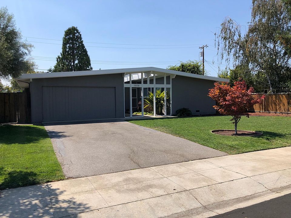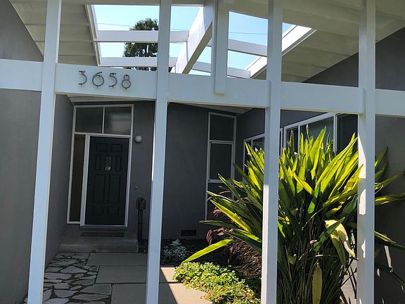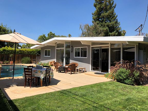 Highly sought after Palo Alto Location, short 5 minute commute to many tech companies, top Palo Alto schools including Gunn high school. Walk to grocery, parks and school. Gorgeous fully remodeled contemporary home with 3 bedrooms, 2 full baths. Gleaming brand new refinished hardwood floors throughout. Extraordinary backyard with new flagstone pool and ledgerstone rock wall with water features. Ultimate in tranquility for privacy and entertaining. Top end kitchen; Wolf oven, Viking gas range, KitchenAid dishwasher and automatic vent exhaust that rises from counter. A cooks dream with long granite kitchen work island and seating for guests. Beautiful open floor plan perfect for family meals or entertaining. Full two car finished garage with custom cabinets and carpeting for extra playroom or workspace. Washer/dryer in garage. Brand new gray/white paint both interior and exterior. New furnace and hot water heater. Pella double pane windows. Tenant pays utilities, owner pays gardener and pool service. No smoking, no pets.
