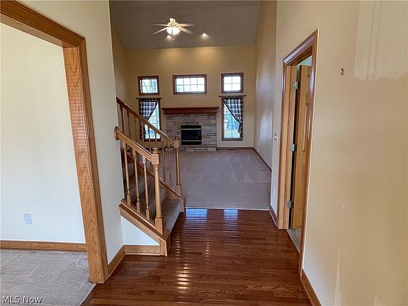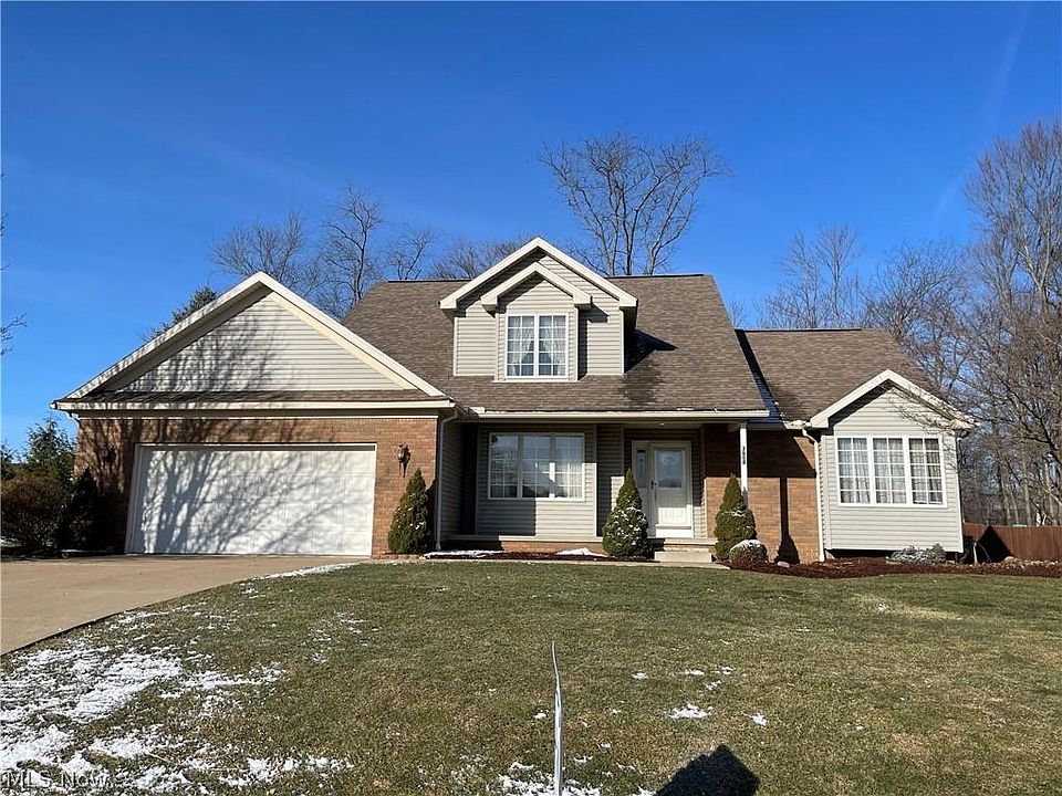 Great open floor plan and high ceilings make this home feel even larger than it is at 2223 square feet! The spacious great room features a stone gas fireplace, lots of windows, and a beautiful open staircase to the upstairs bedrooms. The kitchen has plenty of cabinetry and counter space, and the large bayed dinette has a built-in desk area for computer time or homework. The expansive first floor master retreat is its own wing and features cathedral ceilings, a jetted tub, a shower, and a walk-in closet. A formal dining room will accommodate a large gathering and has a custom lighted niche. Outside you can enjoy the beautifully landscaped yard from your front porch or back patio. This home has been meticulously maintained and is definitely one to check out!