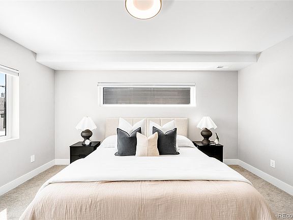 Welcome to this exceptional duplex tucked on a quiet street in the heart of the LoHi "fun-zone" with Denver skyline views and a custom electric pergola off the back patio. Thoughtfully designed and meticulously maintained, this residence offers both style and functionality on every level. As you enter through the front door, the inviting dining area seamlessly flows into the open-concept kitchen, where a spacious island with quartz countertops and a built-in gas range anchors the heart of the home. Designer lighting, rich hardwood floors, and a striking gas fireplace create a warm, modern ambiance throughout the main living space. Upstairs, the expansive primary suite boasts two generous walk-in closets and a luxurious ensuite bath featuring a double vanity and an oversized walk-in shower. Two additional bedrooms share a full bathroom, and the conveniently located second-floor laundry adds ease to everyday living. The third-floor loft opens through sliding glass doors to a show-stopping rooftop deck with sweeping, unobstructed city views. Entertain in style with a fully equipped wet bar and adjacent outdoor living space—perfect for sunset happy hours. A private third-floor bedroom and full bath offer ideal flexibility for a home office or guest suite. Outside, enjoy a fully fenced backyard with low-maintenance turf, raised garden beds, and an inviting patio surrounded by lush landscaping. The detached, oversized two-car garage offers abundant storage. Located just minutes from LoHi and Tennyson Street shopping and dining, this home also provides quick access to I-70, I-25, and downtown. Every detail has been curated for comfort, style, and convenience—urban living at its finest.