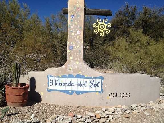 Nestled quaintly in a hollow of Catalina Foothills is a secret. A true Hacienda setting with magnificent views. Old Spanish Colonial doors will greet your guests as they step into your court yard with bubbling fountain and flora. Built in 1974, this 2579 sq ft home was just recently remodeled. There are 3 bdrms, 3 bths, LR W/FP, DR, epicurean kitchen with stainless steel appliances, all new Rogo concrete floors, oversized master suite with private patio outside French doors, and a large patio off the LR/DR with spectacular views of the Catalina Mountains. Four French Doors line the west walls of the Hacienda's Court Yard. Stained polished concrete surrounds three flower beds. From the court yard, you have access to a 356 sq ft office and your large over-sized garage. A rare property!!HACIENDA DE ALCALDENestled quaintly in a hollow of the Catalina Foothills is a secret. Seldom is a true Hacienda available in such a beautiful setting with such magnificent views. Your family and friends will be greeted by old wooden doors which, upon lifting the antique latch, opens into a true Hacienda Courtyard. The fragrance of flowers in bloom, Orange Blossoms, the soft trickle of water from the three tiered fountain, all will astonish your guests as they enter Hacienda de Alcalde.Built in 1974,this newly remodeled 2579 square foot home still has the feel of the traditional old Hacienda, because the owners took great care to keep the old world feel of the original estate. Four French doors make up the west wall of the Hacienda as people enter your beautiful home. All of the floors have been completely refinished back to their original stained and scored concrete by Rogo. As you enter and turn to the right, you will discover 2 large guest suites and the master suite. Each guest suite has its own private bathroom and large walk-in closet. The master suite has French doors leading out to a very private patio with night time views of the twinkling lights of Tucson. The elegant master bath has a large shower, garden tub, double sinks set in granite and a linen closet.Guests are also greeted by a large living room or great room with a panoramic view of the Santa Catalina Mountains. A dining area is part of this room and guests may also step out onto a large patio that faces north with spectacular views of the Catalinas, the Sonoran Desert and just a glimpse of Hacienda del Sol Resort & Spa..The gourmet kitchen has been totally updated with all new Kenmore Deluxe stainless steel appliances and has a window looking out to the private pet patio. There is a window over the sink allowing you to see out to the desert, the mountains or to simply watch the dogs frolic in their own private space.The Hacienda also features a 356 square foot private office with wine rack and long set of book shelves. The suite has its own air conditioning, window with views of the Catalinas and has room enough for an executive suite with a reception area. This great space could be easily converted into a guest suite.The garage has two double doors and the floor of the garage has been tiled with beautiful ceramic tile. A circular drive rounds out the Hacienda with plenty of parking for guests and within a three minute walk to the Hacienda del Sol Resort.If your clients are looking for old world Hacienda charm that has been totally updated, but still has the feel of a Mexican Hacienda, experience Hacienda de Alcalde for yourself; come and see the charm of this beautiful home in person.