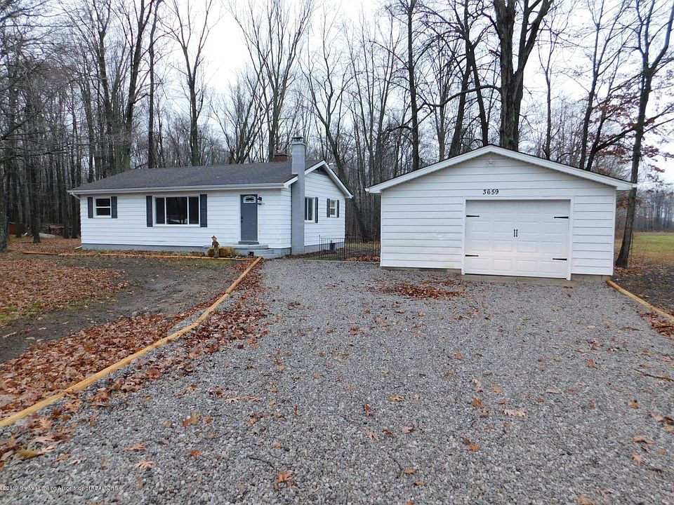 This beautiful 3bd ranch sitting on an acre has been completely remodeled and is turn key ready! Spacious living room showcases plenty of natural light, crown molding, and opens to dining area. Kitchen offers newer appliances & updated cabinets. Three bedrooms offer carpet flooring, closets, and serviced by modern full hall bath. Basement is an open space ready to be finished for a large 2nd living room. Newer furnace & water heater, 2021 updates include new A/C, electrical box, full B-dry waterproof system, washer & dryer, & egress window! Exterior will amaze! Mature landscaping, 1.5 detached garage with door opener & new windows, 16x20 storage barn, firepit, and vinyl siding installed 2020. With a perfect location, updated mechanicals, & modern design- this home is a must see.