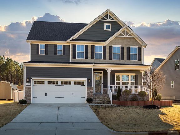 Why build when you can buy a recent build in the highly desired New Hill's Jordan Pointe neighborhood. This 5 bedroom 3 bath property is move in ready and available immediately. Walk in and be greeted by gleaming hardwood floors and TONS of natural light. Cook up a storm in the spacious kitchen featuring center island, gas range, & SS appliances. Guests can easily stay the night in the downstairs guestroom. Upstairs offers master suite and 3 additional bedrooms + loft perfect for man cave OR playroom. Kickback & relax on the porch overlooking 0.20 Acre fenced landscaped yard along with a spacious storage shed.