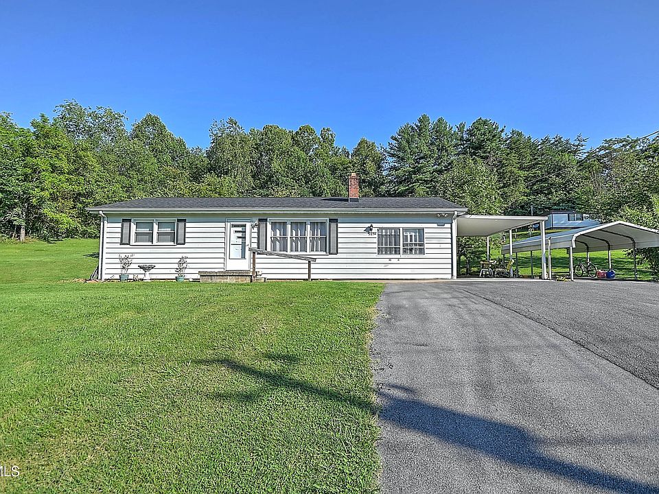 Enjoy ONE LEVEL living in a beautiful 1.6 acre setting! You'll have room to spread out and still stay private. This inviting ranch style home features an eat-in kitchen, living room with fireplace, laundry room and an extra-large den. This one owner, first time on the market home has been lovingly maintained. Outdoors you will find 2 carports with one being used as a covered patio. The 3 exterior buildings offer tons of storage. You won't have to worry about parking. There is enough to accommodate several vehicles. This is a real charmer! Don't let it get away!