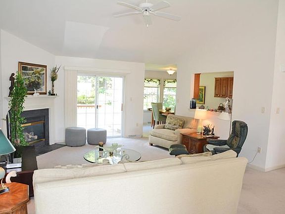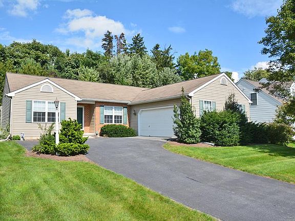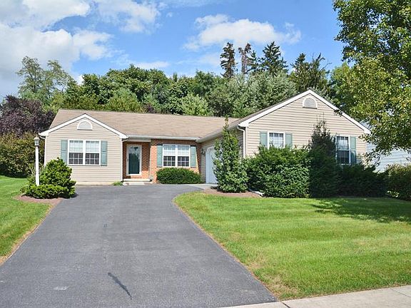 Beautiful & bright, well kept, Hogan & Herr built, rancher! Convenient one floor living including Master Bedroom Suite with huge WIC, cathedral ceilings in both the MBR and Living Room. Very open floor plan with the large LR as central to the home, galley kitchen plus Dining Area and Breakfast areas! All gas home including gas log fireplace in the LR too. Two guest bedrooms with full bath between them! The large rear deck overlooks manicured, easy care lawn, trees & shrubbery. Oversized two car garage is completely finished and insulated with sink, workbench and pegboard for tools. The garage is accessed via the laundry/mudroom. Huge unfinished basement for tons of storage! All gas home serviced annually by UGI.