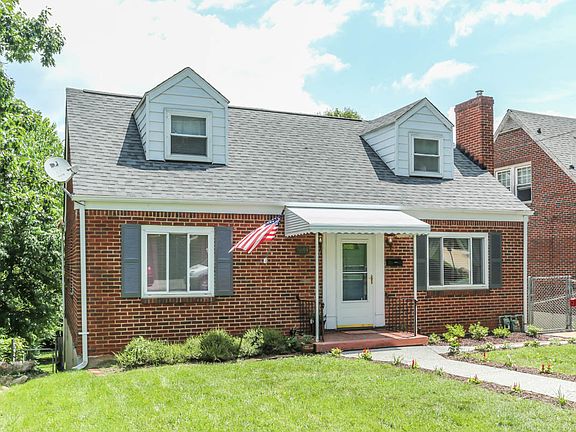 Solid Brick Cape Cod with Full Walkout Basement,Hardwood Floors, Large Living Room with Gas Logs, Dining Rm, Kitchen with Tile Flooring including Appliances. 2 BR and 1 Bath on Entry Level, 3rd BR and 2nd Full Bath up, full Basement, Large Fenced Backyard w/Storage Shed. Newer features, water heater, kitchen stove & heat pump, new roof!