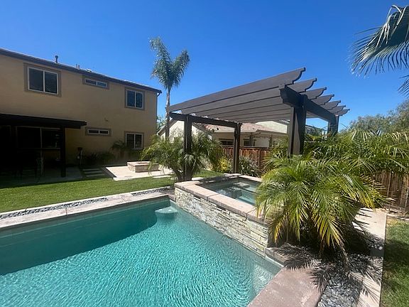 An entertainer's dream home! Beautiful, spacious, clean 4 bedroom, 3 bathroom, 2-story home with gorgeous sparkling swimming pool, covered patio, outdoor kitchen, built in BBQ and firepit! Just think of all the amazing parties you can host this summer! Home is located in the desirable gated community of Tournament Hills. Home has an enormous kitchen with stainless appliances and granite counters, and even a large island for food preparation. One of the bedrooms & bathrooms are located downstairs. The oversized master bedroom has a large ensuite bathroom. Amenities include central a/c, fireplace, 3 car garage & large fenced yard. Minimum 650 FICO score. Owner provides landscaper & pool service. Refrigerator, washer & dryer are provided but not warranted.