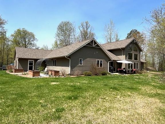 There is so much going on here with residential waterfront compound. 3 BR 3 bath home built in 2013, with geothermal heat and A/C. Awesome attached heated garage with additional 32 x 40 and 30 x 34 garages as well as storage sheds. According to seller's measurements there is approximately 2400' of meandering shoreline if you include the backwater. Bonus log guest house as well as log studio area. Guest house septic is original. Everything in this home has been designed by the owner with very high end quality work. offers panoramic views of Jay Gould, and only a short boat ride to Pokegama Lake or travel up the river for hours! Must be seen to truly be appreciated. Very rare property