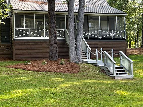 LAKE SINCLAIR-BALDWIN COUNTY! Nearly 200 ft of lake frontage. 3BR/2BA. Located on a private drive with a quiet, peaceful and country feel. Totally renovated interior and exterior in 2020 with custom features fit for lake living. Open concept floor plan. 2 BR located on main floor with 1 BR/BA on second floor. Loads of ship lap and LVP floors throughout. New appliances, cabinets, solid surface countertops and custom tile shower. Custom plantation shutters at all windows. Stone fireplace for those chilly nights. Screened in porch. Nicely landscaped yard. New dock decking in 2020. New HVAC in 2021. Single covered boat house with electric lift and one personal watercraft lift. Move in ready!!!