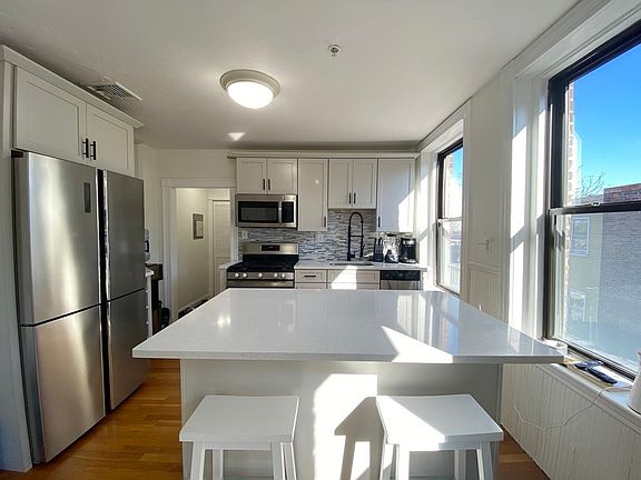 Penthouse level just renovated 2 bedroom/ 1 bath condominium unit in Jeffries Point Condo Building! Open concept kitchen/ living room is flooded with sunlight! Kitchen features stainless appliances, gas cooking, quartz counters, kitchen island and coffee corner! Bedrooms are in the front of the unit and have hardwood flooring. New farmhouse bath with glass shower enclosure and granite ledge. Central A/C and Smart technology including nest thermostat and fire alarms. Common laundry is shared with other Unit Owners. Large common yard and Patio. Step outside to the 120 bus line, Brophy Park, and dining possibilities at The Quiet Few or Italian Express. .5 mile walk to MBTA Blue Line Station, and 2 blocks to Maverick Gate Pass for easy highway access. First and last months rent, and 1/2 Broker fee required. Good credit and income required. Pets considered.