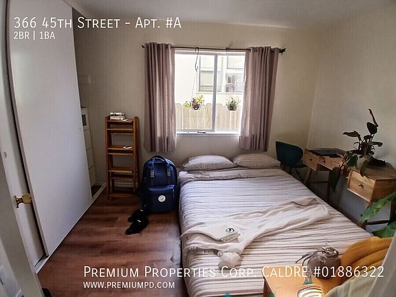 Dog Friendly!! The property has a Dog Run!! Wonderful 2 bedroom in the Heart of Temescal! Walk to amazing restaurants! Close to Bart! $0 Security Deposit Option Available* Unit Description: This spacious 2 bedroom unit is available now! Enjoy the private gated yard! The layout is great with a large living room to relax, plenty of closet space, and large bedrooms. This Two Bedroom has the following features and benefits: Super Spacious Living Room & Open Kitchen Area with TONS of Cabinet Space! Newly Renovated Unit W/ Hardwood Floors Throughout Updated Kitchen & Bathroom First floor unit! Parking Available! *NEW* Dog Run Area For Your Furry Friend! Private fenced yard space off of the living room! Water and Garbage Included Laundry On-site Just 4 Blocks from Telegraph Avenue For Shopping, Food & More! Available June 1st 2025! Free Membership to Premium Concierge Services For Your First Lease Term Professionally Managed For Premium Service Applicants must qualify for a zero security deposit. Fees and Restrictions may apply. See Leasing Agent for Details. 45th Street Apartments 366 45th Street Oakland, CA 94609 PROPERTY DESCRIPTION Nestled in the vibrant heart of Oakland's Temescal neighborhood, 45th Street Apartments offers a curated living experience with its 12-unit complex featuring 1, 2, and 3 bedroom apartments. Step into a space where modernity meets comfort, with most units boasting remodeled hardwood floors, sleek kitchen countertops, and an abundance of windows that drench your home in natural light. Located in a prime Oakland area, our gated community ensures privacy and security right from the entrance, with convenient parking waiting just up the driveway. Say goodbye to laundromat runs thanks to our on-site shared laundry room. And for our pet-loving residents, we've introduced a brand-new dog run area for your furry companions to enjoy. The shared backyard space is your perfect retreat for sunny days, offering a peaceful outdoor haven. THE PREMIUM DIFFERENCE At 45th Street Apartments, we're committed to providing an unmatched living experience through our Premium Service. Our friendly staff is dedicated to ensuring your happiness, from swiftly addressing maintenance requests to keeping the property in top-notch condition. Our property also feature an On-Site Resident Manager, ready to offer additional support and peace of mind. Choose to elevate your lifestyle with us and experience the difference of living in a Premium Property. PREMIUM CONCIERGE SERVICES Get ready to live the hassle-free life at your new apartment, which comes with an awesome membership to Premium Concierge Services for your initial lease term and guess what, it's totally FREE! Here's what you get: Utility Setup & Billing Renter's Insurance Handyman Services Cleaning Services Package Handling Package Return Trash Valet Service Concierge Recommendations And More To Come! Just a heads up some restrictions apply, so check with our agent for all the details. Oh, and the photos you see might be from a similar unit, but trust us, they're all great! NEIGHBORHOOD DESCRIPTION Living at 45th Street Apartments means you're always just moments away from everything you need. From Safeway and Whole Foods Market to Temescal Produce Market, daily essentials are within easy reach. A short 10-minute walk to MacArthur BART puts the Bay Area at your fingertips. Dining out is a breeze with a diverse array of restaurants nearby, including the beloved Burma Superstar among other culinary gems. For leisure, Mosswood Park offers the perfect setting for a stroll or picnic, and music enthusiasts will appreciate the proximity to Oakland Guitars. At 45th Street Apartments, you're not just finding a place to live; you're discovering a community where life's conveniences blend seamlessly with the charm of Oakland's Temescal area. Welcome home.