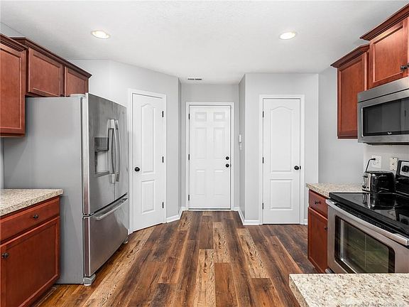 Beautifully maintained 3 bed, 2 bath plus bonus on 1 acre lot in Carolina Oaks. Large living room that opens into the eat in kitchen area. kitchen features SS appliances, pantry and ample counter space for cooking. Master bedroom with double vanities, soaking tub, separate shower and walk in closet. New carpet in bedrooms/bonus, new LVP in living areas and fresh paint throughout. Fenced in back yard with huge stone paver patio/entertaining area. No city taxes, easy access to 295 and Ft. Bragg. A MUST SEE!