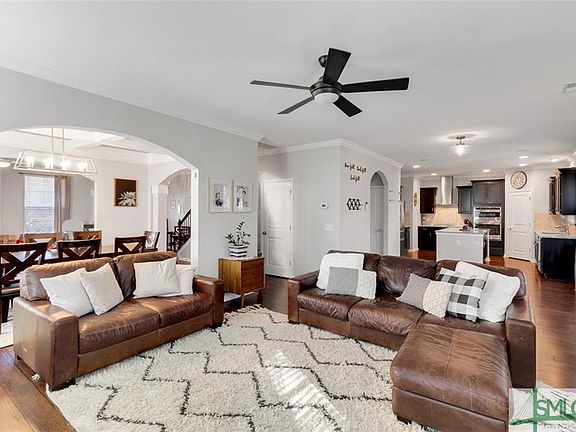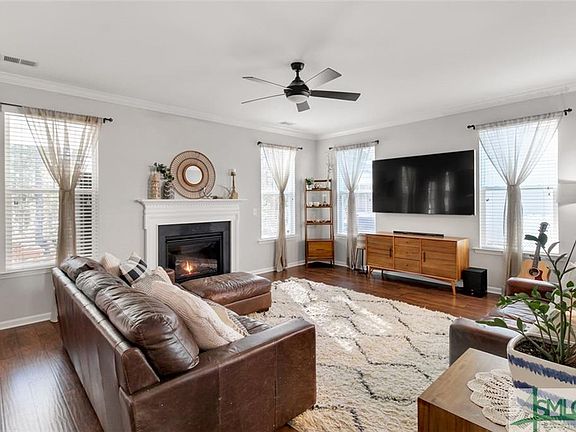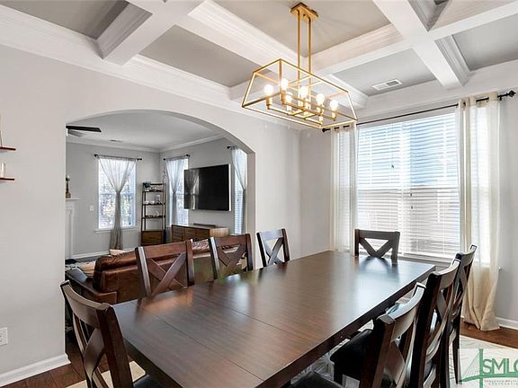 Exclusive Listing of The Trisha Cook Team! It's Cooler in Pooler! Step into luxury w/ this amazing home that features gorgeous wood floors, beautiful crown molding, elegant archways, & granite throughout kitchen and bathrooms. The main floor provides a spacious floor plan offering a formal living rm, separate dining w/ coffered ceilings, great room w/ gas fireplace, kitchen, & sunroom. Gourmet kitchen comes complete w/ SS appliances, HUGE island/breakfast bar, tile backsplash, Dbl oven, gas stove & an upgraded range hood. Upstairs you'll find all bedrooms w/ walk in closets, 3 baths, & laundry rm. Master offers an abundance of space including sitting room w/ Ensuite bathroom, his/her vanities, garden tub, separate shower, & TWO walk-in closets. Enjoy relaxing in the backyard, under the pergola or around the fire pit. Patio has been extended, providing more space to entertain friends and family. Backyard backs up to protected wetlands & will never be built on. This home is a MUST SEE!