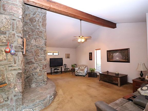 Quaint spot minutes from town. This property is on 1 full acre, wood and rock siding, great front and back yard. Drive through 2 car carport with storage. Large Rock Fireplace, (currently has electric heater) Living, Dining and Kitchen flow easily. Exits to covered patio through living and both bedrooms. Separate bunk beds in hall area for guest. Lots of built in storage throughout the home. Storage building off back patio. Inset florescent lighting on most areas of the home. No Central h/a