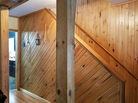 (#297J) This 3+ bedroom, 2 bath home offers a lot of square footage at an affordable price! Upon entering the house is a spacious, insulated, enclosed porch with large windows and knotty pine walls. This area is bright and welcoming. The paneled living room features rustic wood posts and newer laminate flooring. The eat-in kitchen is large enough to seat more than 6 people. There is also one bedroom , a half bath and good sized laundry room on the main floor. Upstairs there is a full bath with a square vessel sink, a bedroom with a walk-in closet and sitting room and another bedroom. The lot is level and open with a fire pit in the back yard. Call today!