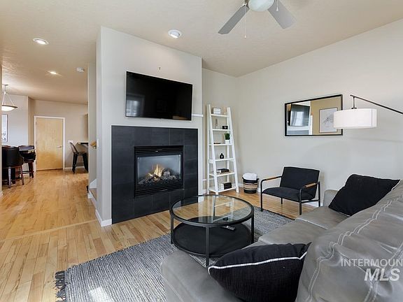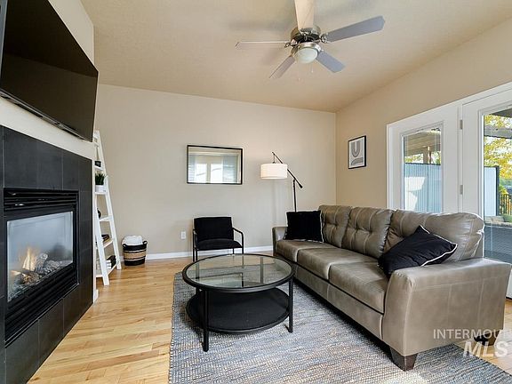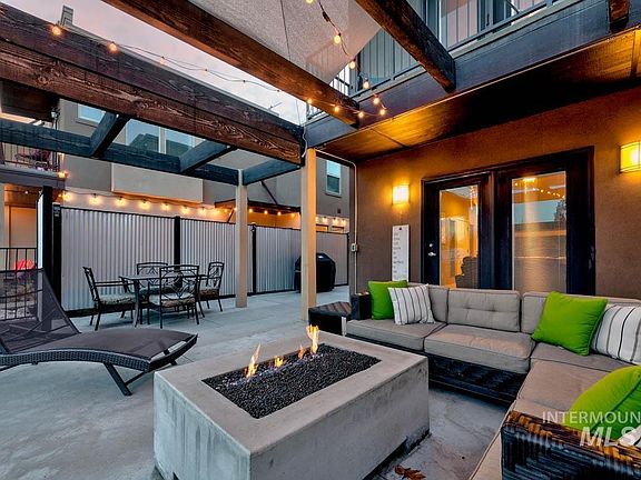 A rare opportunity to own real estate in the heart of the Live-Work-Play corridor of Garden City, in the coveted Waterfront District. This well-maintained townhouse offers the perfect blend of lifestyle and location with direct access to the Boise River Greenbelt, Whitewater Park, and an exploding scene of breweries, coffee shops, artist studios, and restaurants, this property stands in one of the fastest-growing urban pockets in the Treasure Valley. An entertainer's dream, relax in this open concept kitchen, dining, and living that transitions to the year-round outdoor living area. Offering an oversized patio, featuring turf, a gas fireplace for gathering, pergola, and ample room for dining and hosting in the evenings or relaxing with morning coffee. Hardwood floors throughout this thoughtful layout, with all bedrooms situated upstairs. Master suite features massive walk-in closets, plus incredible views of the foothills with a private balcony. Alley load double car garage, plus large driveway. A must see!