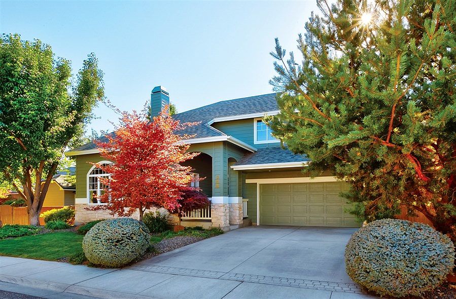 Fabulously upgraded residence nestled in a charming low-traffic community in SE Boise. Meticulously landscaped grounds surround the home, providing beautiful curb appeal and inviting guests into a grand and bright interior. Soaring two-story ceilings are accentuated by an abundance of natural light pouring in through large windows. A three-sided gas fireplace defines living & dining spaces in the open design while providing warmth and character. The seamless flow from living to dining intuitively leads into a stunning remodeled gourmet kitchen featuring granite countertops and built-in double ovens and cooktop. The upper-level hosts sleeping quarters, with three generously-sized bedrooms, including a spacious master suite. The luxurious spa-style master bath provides dual vanities, jetted tub, glass shower, and his & her walk-in closets. The outdoor setting features a trellis-covered patio for entertaining or relaxing. Mature trees & garden beds line the fenced-in yard, providing privacy and shade. The prime SE Boise location offers close access to shopping, downtown, BSU, and desirable Timberline High School. The Greenbelt, Bown Crossing, and Barber Park are just minutes away! An incredible opportunity to enjoy low-maintenance living in a wonderful location!