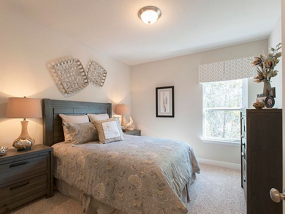 This Delray plan features 4 bedrooms with two just off the foyer and an additional bedroom that could be used as an office or study. The kitchen isopen to the large great room and has center island with granite cabinetry, a stainless sink and the appliances include a stove, microwave and dishwasher.Bedroom 1 has his and hers walk-in closets and a bath with dual sink vanity and shower only. Additional features of this home include: LVP flooring throughoutthe main areas of this home with carpet in each bedroom, brushed nickel hardware on interior doors, and quality paint on walls.