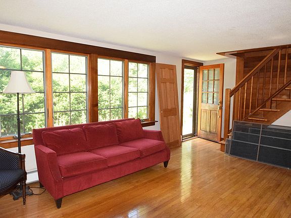 Set well back from the road, this 3-bdrm contemporary Cape has a nice, private feel and sits on a large, level lot. The kitchen has an oversized slider leading to the back deck plus lots of windows throughout the house providing a bright and sunny interior. Two bdrms and full bath down plus a big open bedroom on the 2nd floor which boasts skylights, wood stove, bathroom and a slider to a balcony overlooking the back yard. A fun room with lots of flair! New heating system in 2009 and new septic in 2015. Home sweet home!