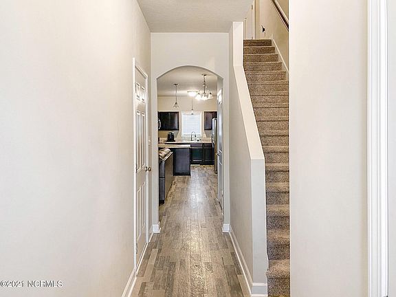 !!COMING SOON!! This beautiful 3-bedroom, 2.5-bathroom townhouse will be gone fast, and you don't want to miss it! Pristine landscaping at the entrance. As you step inside the foyer and move ahead, you will be welcomed into a living room with plenty of natural lighting and gorgeous vinyl flooring throughout the entire downstairs. The kitchen opens to the living area, and it includes stainless steel appliances, dark espresso cabinets/pantry with ample cabinet space. Just off the living area, the sliding glass backdoor leads straight to a back-covered patio, including a fenced-in backyard and a firepit. Heading back inside and at the top of the stairs is the laundry closet. The bedrooms are carpeted. The owner's suite is very spacious, has a huge walk-in closet, and the owner's bathroom comes complete with two vanities, a walk-in shower, and a linen closet for extra storage. The other two bedrooms share a nice-sized full bathroom with a tub/shower combination. This townhouse is close to the Stone Bay gate of Camp Lejeune, MCAS New River, shopping, Topsail Beach, and Onslow Beach. This one will not last, so book your showing now before it is gone.