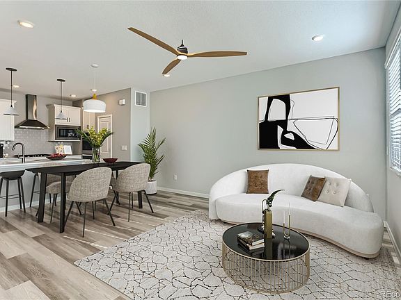 Introducing the Lowry A End Unit, the most sought-after floorplan in Argenta! This stunning 3-bedroom, 3-bathroom townhome allows for optimal flow and flexibility of space. Dual master suites, a balcony, and a laundry room on the 3rd floor elevate the comfort of this home. The 2nd floor offers an open layout with a 3rd bedroom and full bath, while a bonus/flex room on the first level and a 2-car garage complete the picture Designed with energy efficiency in mind, enjoy eco-friendly AC, furnace, tankless water heater, lighting, moen bath fixtures, and appliances. This is no cookie cutter interior. If you love homes with character; look no further! Upgrades include a Luxury Kitchen with a hood, cooktop, microwave/oven combo, and dishwasher. The crisp white cabinets, luxury wavy black backsplash, and black hexagon tile on the fireplace are sure to turn heads! This is a unique design to this home! Ask to see all of the options in this end unit. Ideally located east of Lowry, these townhomes are within walking distance to Lowry Town Center, Lowry Dog Park, UCHealth, and Cherry Creek Shopping Center. Downtown and major highways, I-25 and I-70, are easily accessible. Argenta is more than just luxury townhomes; it offers retail spaces and a Central Plaza featuring a food truck area, event space, lawn, and art installations. Two shared courtyards within the community boast a shaded BBQ area and seating. Seize the opportunity to make 366 N Geneva St your own! Under construction with an estimated completion of October/November 2024.