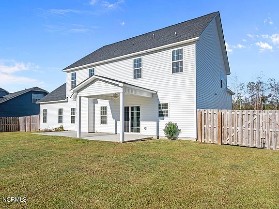 Like-new 2 yr home for $10k less than the same new construction floor plan in Wylie Branch w/ ~$38k in added value for FREE. This means you keep $38k cash in your pocket & can focus your money on enjoying life! See pics & docs for list. Community pool is coming soon! NEW carpets in bedrooms, professionally cleaned ducts, & fresh Frosty White paint throughout. There are no homes in front or behind you for added privacy. The natural area across the street comes to life in the evenings w/ frog harmonies & bird melodies. The 2-story entrance foyer gives that open feel as you step in. To the left is a formal dining room w/ coffered ceiling & wainscoting w/ chair rail. If you'd rather this be a home office, school room, craft room, or flex room, just add French doors. The family room is set up for multiple couch arrangements & reclining chairs w/ a gas fireplace as the centerpiece. A 4' x 8' farm table fits comfortably in the breakfast area & provides the perfect space b/n the family room & kitchen. The kitchen has granite countertops, an abundance of cabinet space, stainless steel appliances including a matching GE refrigerator, a large island, & a spacious walk-in pantry. The first-floor master suite has a tray ceiling & lots of natural light. The master bath has tile floors, a dual vanity, soaking tub, separate shower, & separate water closet. The walk-in closet is huge, no other way to describe it. There is a dedicated laundry room by the garage w/ plenty of extra space. Upstairs are 4 more bedrooms, 1 that has a Queen Murphy bed w/ built-ins & can be used as a bonus room/playroom/guest room. There are also 2 more full bathrooms. The fully fenced backyard has a covered patio, an extra open patio, & a shed to store all your outdoor lawn & beach gear. Topsail school district! 5 mins to Hampstead. Close to Surf City beaches. Termite bond. HVAC serviced annually. 1 year / 1% buydown offered w/ full price offer.