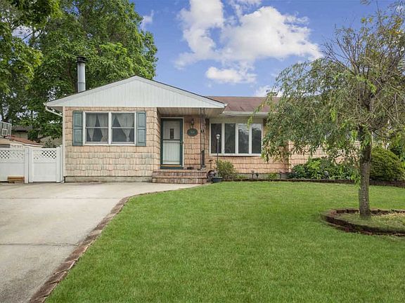 The perfect starter home with low taxes! Beautiful 3 bedroom ranch home with 1 full bathroom set on flat fenced .17 acre property. Well kept interior features a living room, cozy den with fireplace, and a spacious eat-in kitchen with sunny breakfast area in front of sliding doors leading to a covered backyard porch. You will ll find gleaming hardwood floors & ceiling fans throughout. A partially finished lower level provides recreation space, laundry, unfinished storage, cedar closet, workroom, and has a separate outside entry. An extended driveway provides ample parking. Move-in ready home conveniently located to major roadways, Stony Brook University, and local hospitals. Energy-efficient gas, hot air heating (1 zone) Separate hot water heater True taxes with star rebate: $7916.95 Middle Country School DistrictAverage PSEG $113 per month based on balance billingSquare feet: 1242 Acres: 0.17
