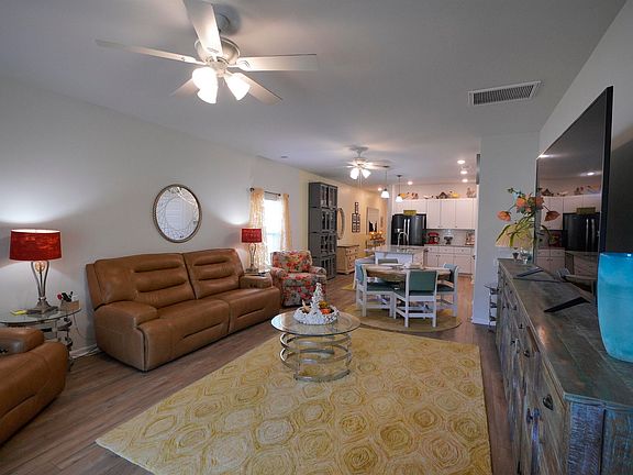 This is a 3 bedrooms, 2 bath home with great views of the lake/pond from your back porch. it has a substantial sized Owner's Suite and walk in closet. This open concept home features 36" stylish white cabinets, 3 x 6 subway tile back splash, granite in the kitchen, Shaw laminate flooring in the main living areas, GE stainless steel appliances including a gas range. The Owner's suite bathroom highlights double bowl sinks, elevated vanity, 5' walk in shower. This home also features LED recess lighting, and a Rinnai tankless water heater. All appliances including the washer/dryer and refrigerator convey with the purchase. This is a Natural Gas community.