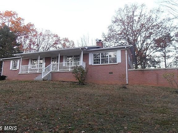 NICE STURDY BRICK RANCHER. Well built and maintained. Secluded on 7+ ac., mostly wooded, stream, just minutes from town; spacious kitchen that was just remodeled, huge family room with brick fireplace with new pellet stove and beautiful hardwood floors with lots of windows, tons of light, and views outdoors opens onto concrete deck with basement storage below. Beautiful setting, great house, very quiet, and close to Winchester.