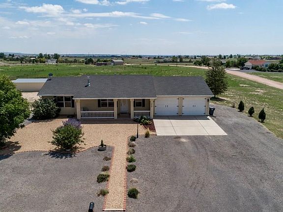 Horse lovers delight! Over 3 acres on a corner lot! Easy access for any kind of RV, horse trailer, etc. This stunning home features a large master suite with 5 piece bath and 1 additional guest bath on the main level. Beautiful hardwood floors in the kitchen and dining room. Spacious living room with lots of sunlight! Covered front porch is a perfect spot for a porch swing to watch the amazing Colorado sunsets! A large portion of the backyard is fully fenced with chain link fencing. Full unfinished basement is insulated and has the possibility of at least 2 additional bedrooms. Located in a quiet neighborhood close to Shopping, schools and medical care. Don't miss out on this beauty!
