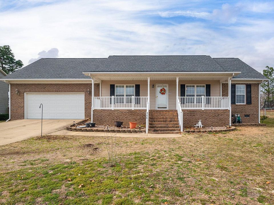 This beautiful, well-maintained 3 bed, 2 bath with ADDITIONAL bonus room in Sunset Ridge welcomes you with wide-open main living areas. The large front porch is the perfect spot to enjoy your morning coffee. There's tons of space to entertain friends or work on hobbies in the well-appointed and fully fenced backyard featuring a deck, an above ground pool, a carport, and two spacious wired workshops with concrete floors. The living room TV, the kitchen refrigerator and the bonus room window unit (cools and heats) stay as gifts to the buyer. Updates in the last 5 years include new quartz countertops (2019), new flooring throughout, new water heater (2018), a new shower in the primary suite (2021), and a new roof (2020). Wonderful subdivision with no HOA!