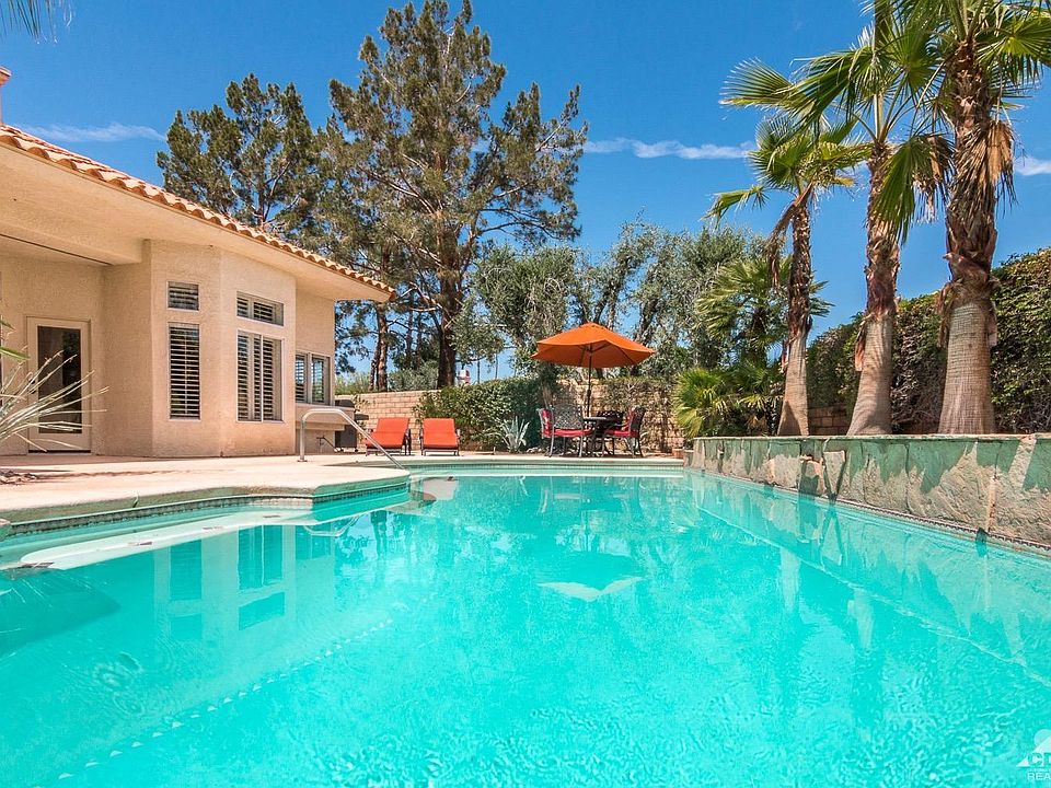 Beautifully remodeled and furnished single family home in The Links section of the Desert Falls Country Club community. The kitchen has been completely remodeled with slab granite, travertine tile, and newer cabinets. Master bath has remodeled cabinets, countertop, , dual sinks, and flooring. The hall bathroom has been remodeled with designer sink and faucet. In addition, the custom travertine pattern is carried throughout the foyer, family room and hallways. This lovely home is offered furnished with newer furnishings. The private pool has been refinished and a private spa completes the package! Homeownership includes 24 hour security, 9 lighted tennis courts (includes a pickle ball court), and extensive fitness facility. Desert Falls is located mid-valley, within walking distance of shopping and dining (from fast food to some of the best restaurants in the valley), and easy I-10 access.