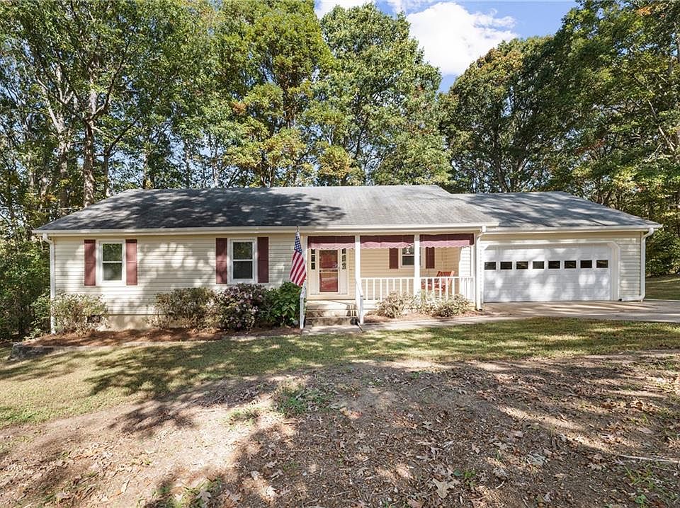 Welcome home to your 3 bedroom 2 bathroom ranch located on a .70 acre, level, wooded lot in a cul-de-sac, offering plenty of privacy. The home features a charming rocking chair front porch, hardwood floors, an oversized laundry room, large back deck, beautiful landscaping, and 2-car garage. Inside, there's a cozy stone fireplace and spacious primary suite with soaking tub and separate shower. Don't miss out, this one won't last long!