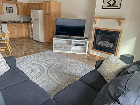 Updated 1 bedroom condo with a Murphy bed, for sleeping accommodations up to four. BR has convenient attached full bath, in addition to the full bath for guests. Other features include an open kitchen, dining & living room with a cozy fireplace and deck overlooking the serene, wooded lot. Ceramic tile runs throughout the kitchen/dining area and baths. Ideal for snowbirds or anyone looking for an up north getaway. Seasonal or year round living.