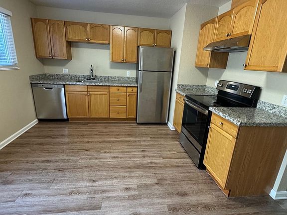 - Stainless-Steel Refrigerator, electric cooking range, oven, vent hood, and dishwasher.