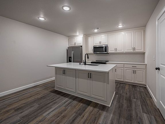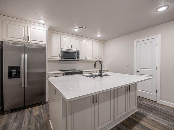 Welcome to The Residences at Bryson Lake! This 3-bedroom, 2-bath, single-story duplex with one-car garage is perfectly situated 6 miles from Whiteman Air Force Base. It boasts quartz countertops in kitchen and bathrooms and an open living room/kitchen floor plan. Stainless appliances include refrigerator, stove/oven, dishwasher, and microwave. Washer and dryer included. HOA fee of $95 per month includes high-speed internet, basic cable (Spectrum), trash pickup, and lawn care. Community amenities include a lake, pool, playground, walking trail around the lake, and exercise equipment in the clubhouse. Small dogs (2 max) are welcome with $500 pet deposit per dog, meet and greet, and proper paperwork.