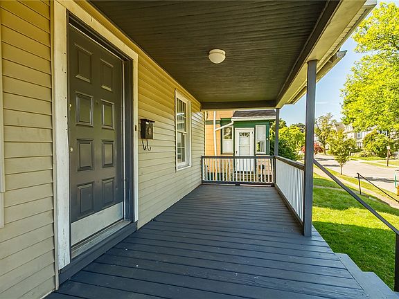 Outside, a partially fenced backyard offers room for outdoor entertaining or a garden. The covered front porch adds classic curb appeal and a welcoming spot to relax.