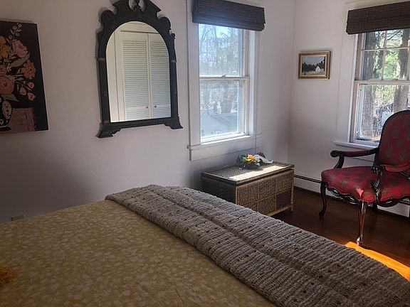 Lovely 2nd floor "home" in antique colonial set on beautiful acre lot with nature views. Private entrance with new well lighted sidewalk and carpeted staircase. Off street parking. Oversized living room, fully furnished with comfy and stylish decor. French doors, lots of natural light, private screened in porch, large dining room which can serve as home office if you'd like. Brand new kitchen cabinets and appliances, fully stocked with new pots, pans, etc One bedroom with brand new mattress and bedding. New carpets. Bathroom with tub/shower and new raised toilet. Washer/dryer. Lots of closet and storage space. Landlords live on site and take pride in maintaining property. Rent includes heat. Pet will be considered. Great convenient location to restaurants, shopping and highways, yet peaceful, neighborhood feel. Owner pays for heat. Electric and cable tv/internet at renter's expense. No smoking. Background and credit check required.