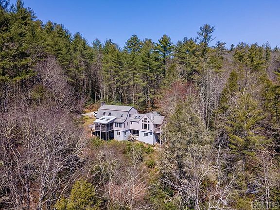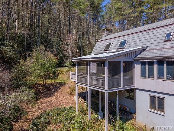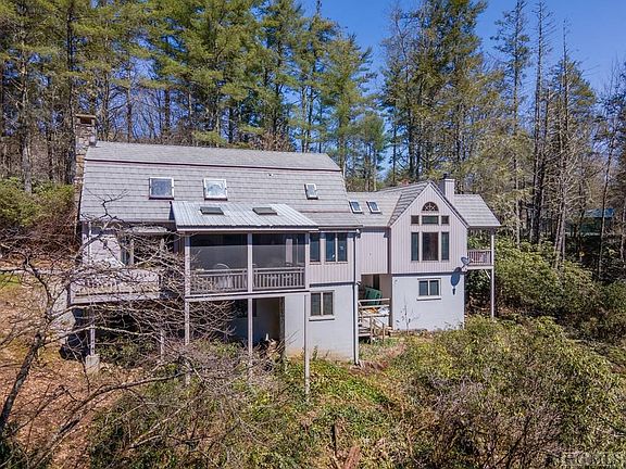 What a rare find this timber frame peg home is. It sits overlooking the bold Houston Branch, on 4.27 acres, and is minutes from downtown Highlands, NC. The Spanish tile, vaulted ceilings, and rustic timber frame are what give this home so much charm. There are 3 beds and a bonus room (2 bedroom septic system), 4 baths, and an office/study. The Living room is spacious and offers a stacked stone wood-burning fireplace to cozy up with. Just off from the kitchen is a beautiful screened-in porch that allows you to hear and see the waterfall below. The large master suite offers a wood-burning stove and private deck to enjoy the view. Head upstairs to the 2 guest bedrooms and a full bath. There are additional sleeping quarters, a laundry closet, and a full bath on the lower level. This private property has so much to offer, and it's gently rolling. There is a path that will take you directly to the stream! Home is being sold completely furnished.