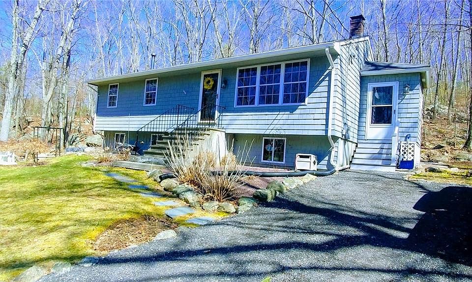 Outstanding opportunity to own this beautiful, well maintained 3 bed home. Situated on tranquil wooded 2 acre lot set off the road for privacy. Featuring new driveway, sun-filled kitchen with corian counters, center island with dishwasher. Nice dining area with sliders to patio, great for entertaining.Remodeled mudroom, hardwoods in living room and all bedrooms, open stairway to lower level large finished family room, office and wood stove, new well blue tank, updated construction windows throughout, outdoor shower, paved patio, detached garage with plenty of storage, 1 year buyers home warranty included! Best of both worlds--good highway access with country living! Subject to sellers finding suitable housing.
