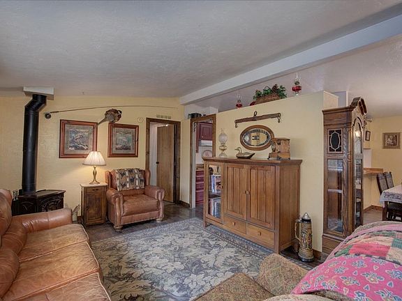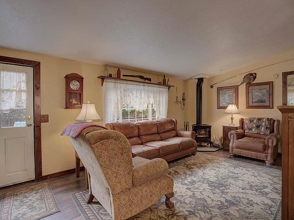Private & enchanting setting! 2 bedroom 2 bathrooms w/ bonus room in this 1152 sq.ft. Very lovely manufactured home built 1985. Cheerful kitchen is streamlined and well equipped with newer fingerprint resistant stainless-steel refrigerator, built in desk area & breakfast bar! Nice sized dining room open to spacious living room with a certified wood stove! Desirable split bedroom plan with main bathroom thoughtfully decorated, guest bedroom has vaulted ceiling, roomy closet and en suit bathroom! Enjoy your outside entertaining on the large deck that wraps around back and side of home with seating areas, propane fire pit to enjoy all year round, hot tub & pool with deck surround. Lush landscaping with Hostas, grapes, & apple trees! Newer metal roof,Two car detached garage with shop area, canning/meat locker & storage areas! Enjoy free range eggs with your very own chicken coop! All of this on .43 fenced & gated. Assessor has home as 2 bdrm Seller is looking into this.